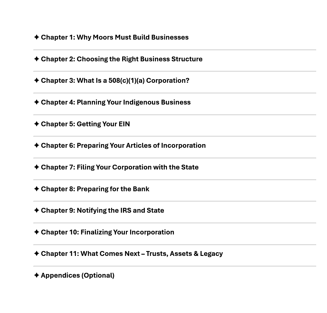 To complete the process as outlined in the book, be sure to purchase the Certified Moorish 508 Toolkit, which includes all the customizable templates referenced throughout. 👉 Get the Toolkit here